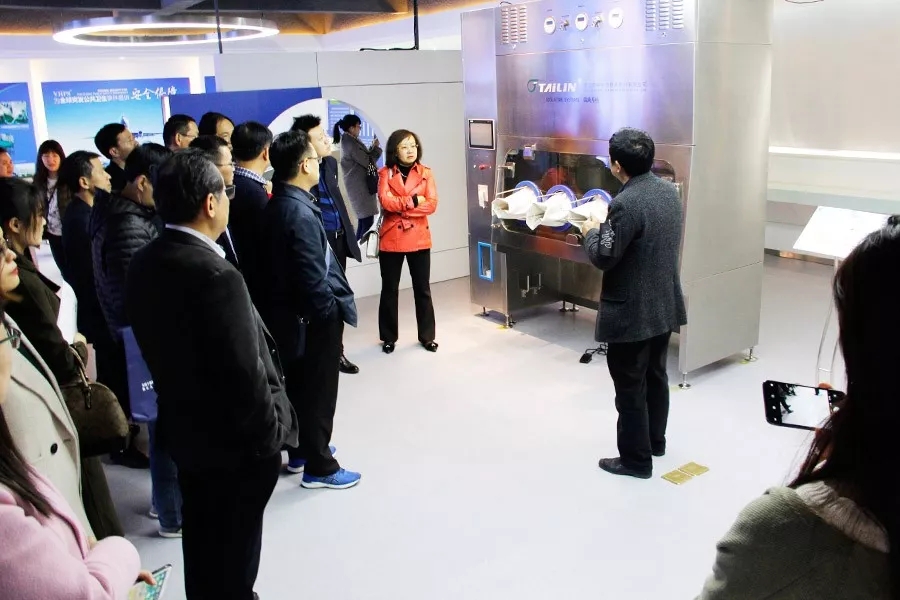 來訪領導專家首先參觀了泰林生物科技展廳,全面地了解了泰林生物的發(fā)展現狀,醫(yī)藥行業(yè)領導對無菌隔離器系統(tǒng)、過氧化氫滅菌器、微生物檢測系統(tǒng)及TOC分析儀等泰林核心產品產生了極大的興趣。參觀的同時也對產品的操作過程及性能特點展開了討論,充分肯定了泰林生物的科研技術及成果。
